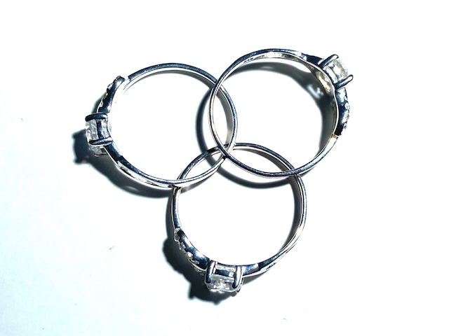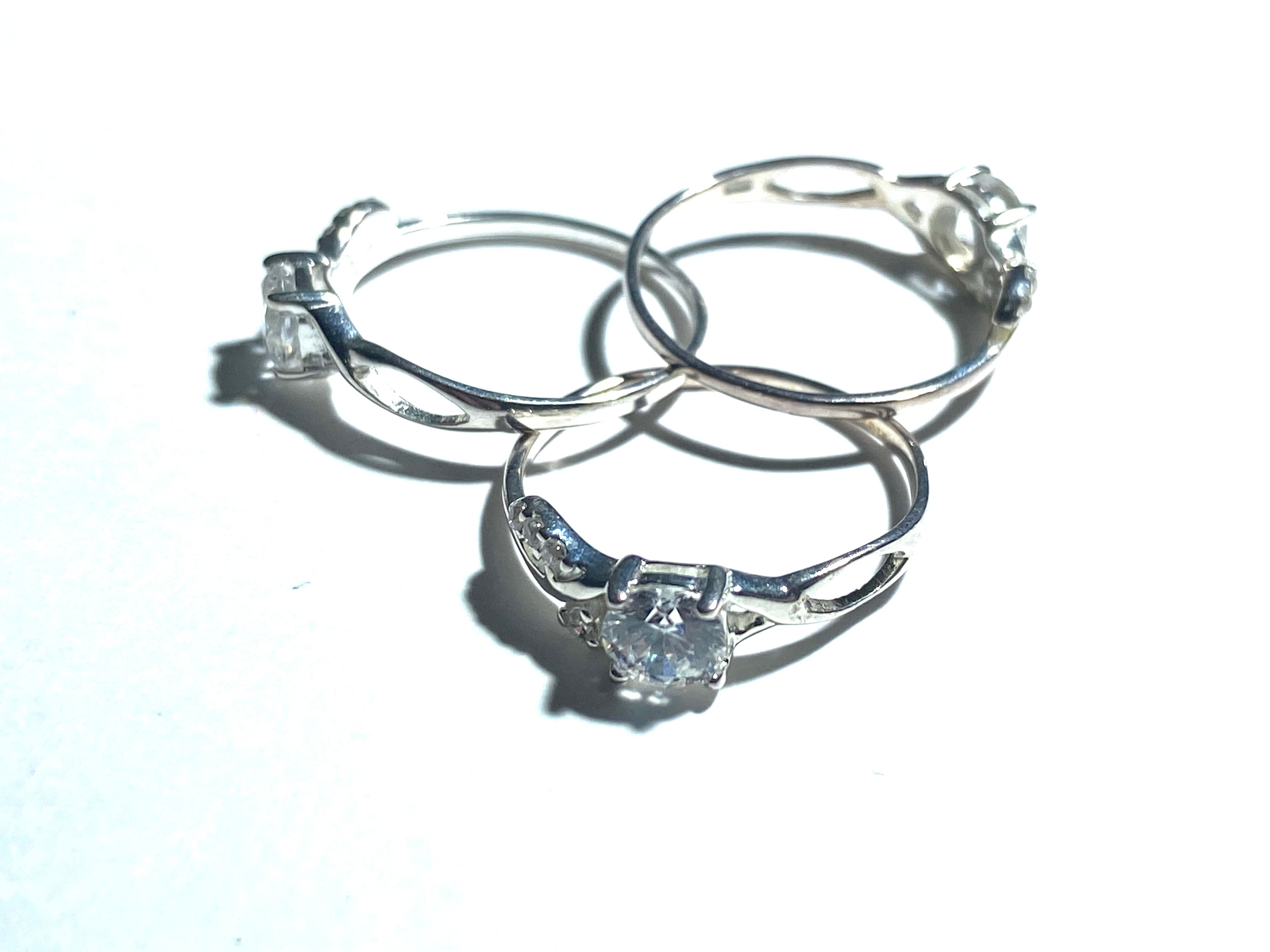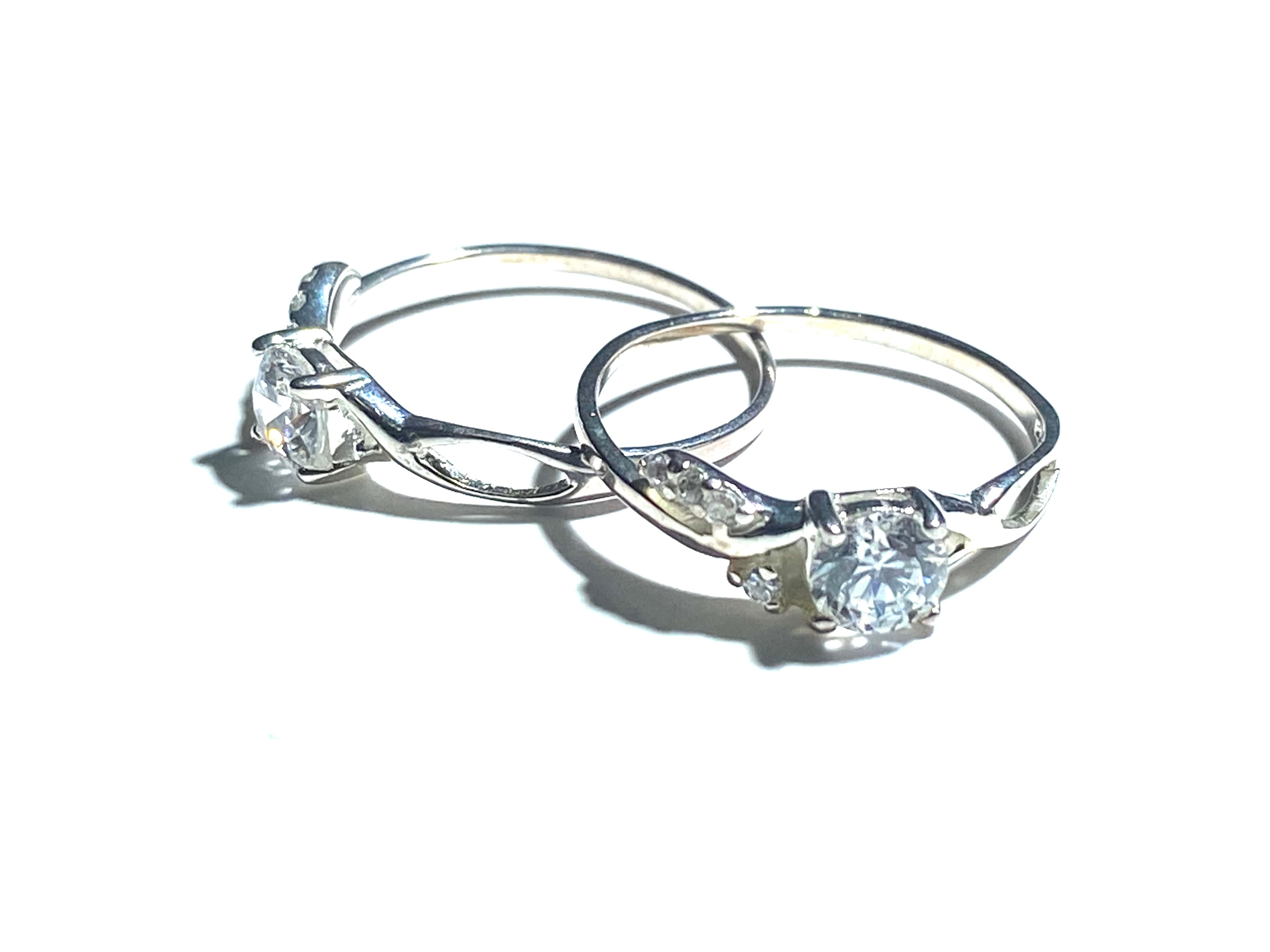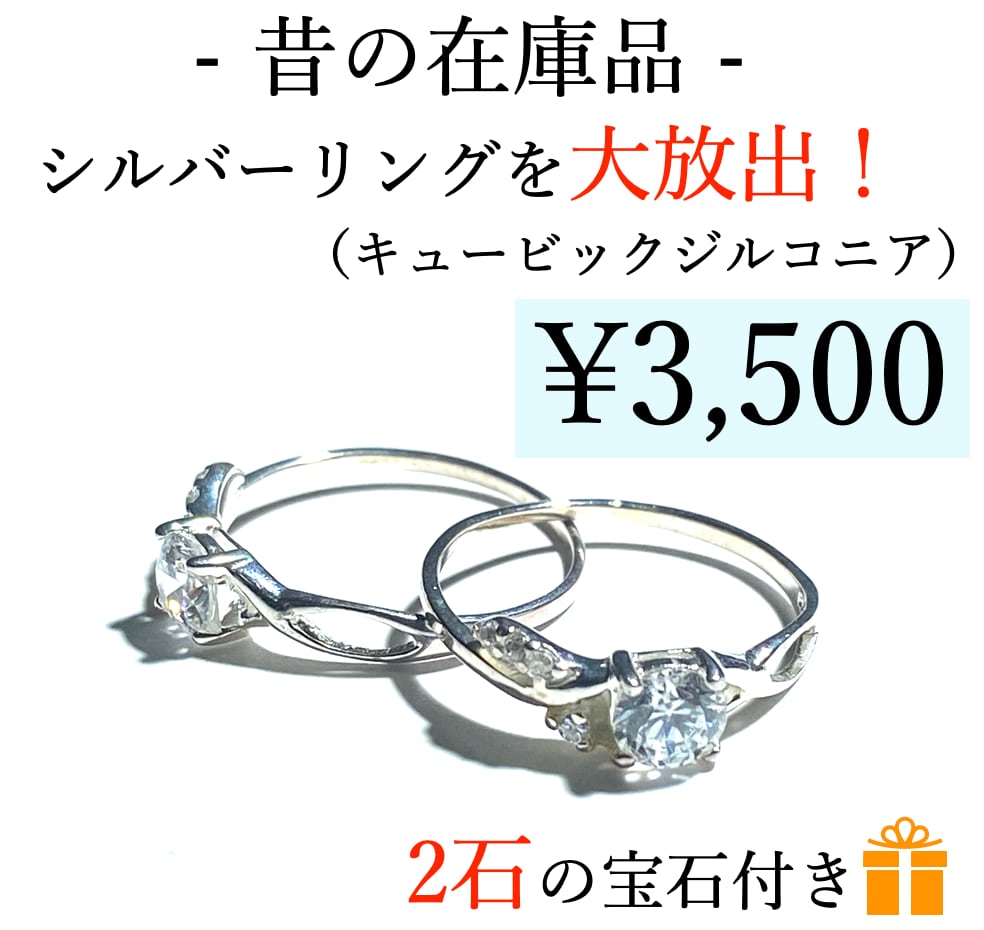 写真のキュービックジルコニアリングと2石の宝石をお送り致します。