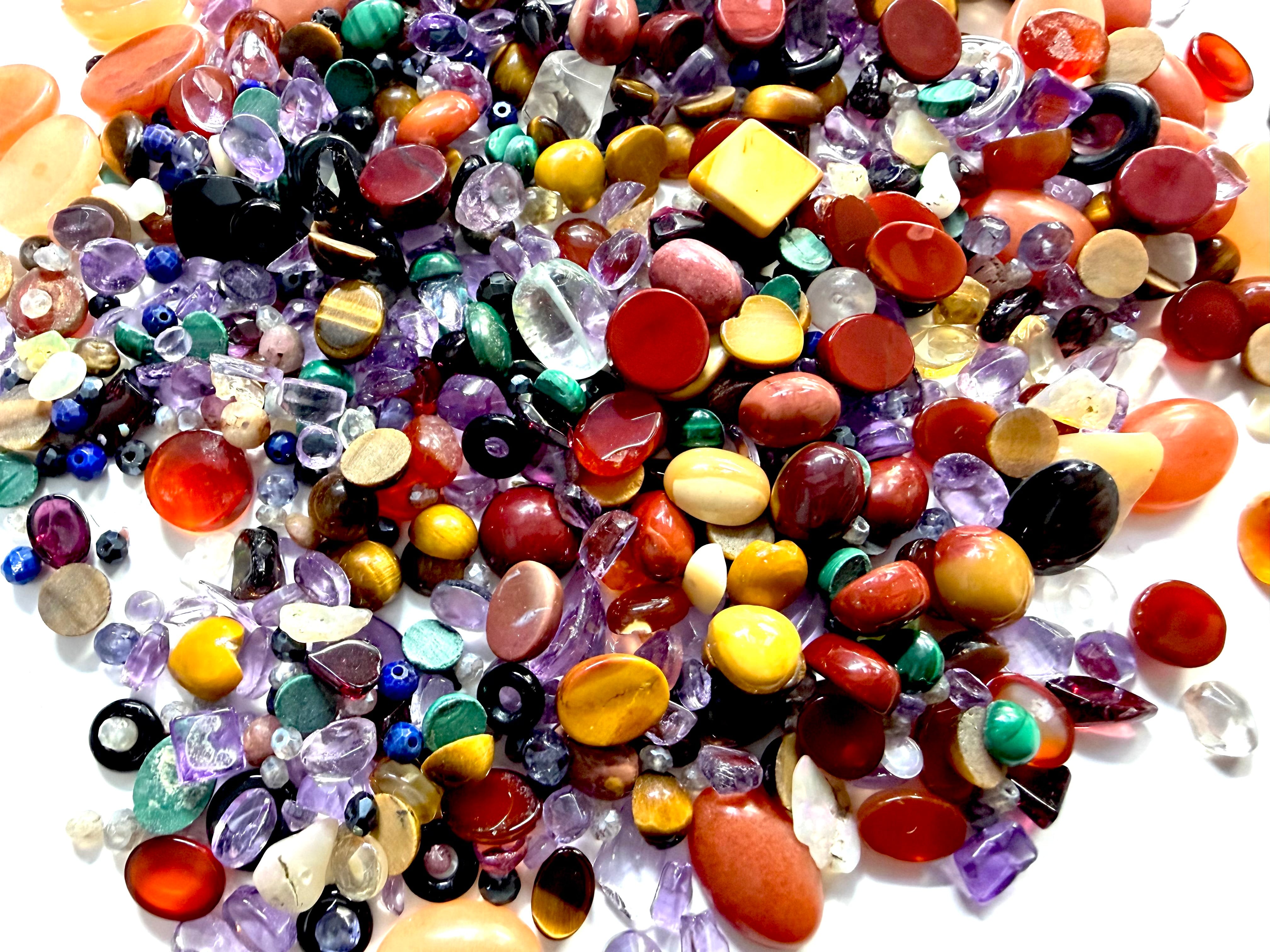 1、「欠け宝石」「穴あき宝石」「天然石」「さざれ石」「欠けていない宝石」の詰め合わせ袋で約100ct分の宝石がはいります。